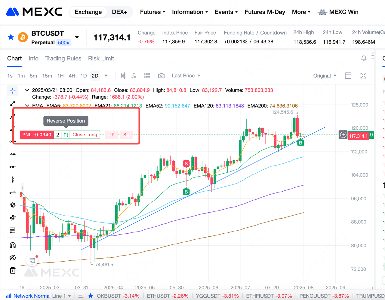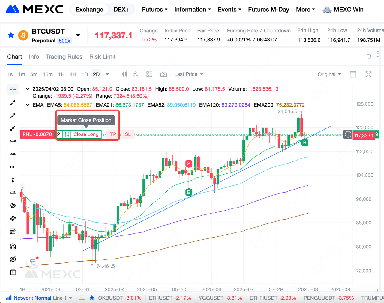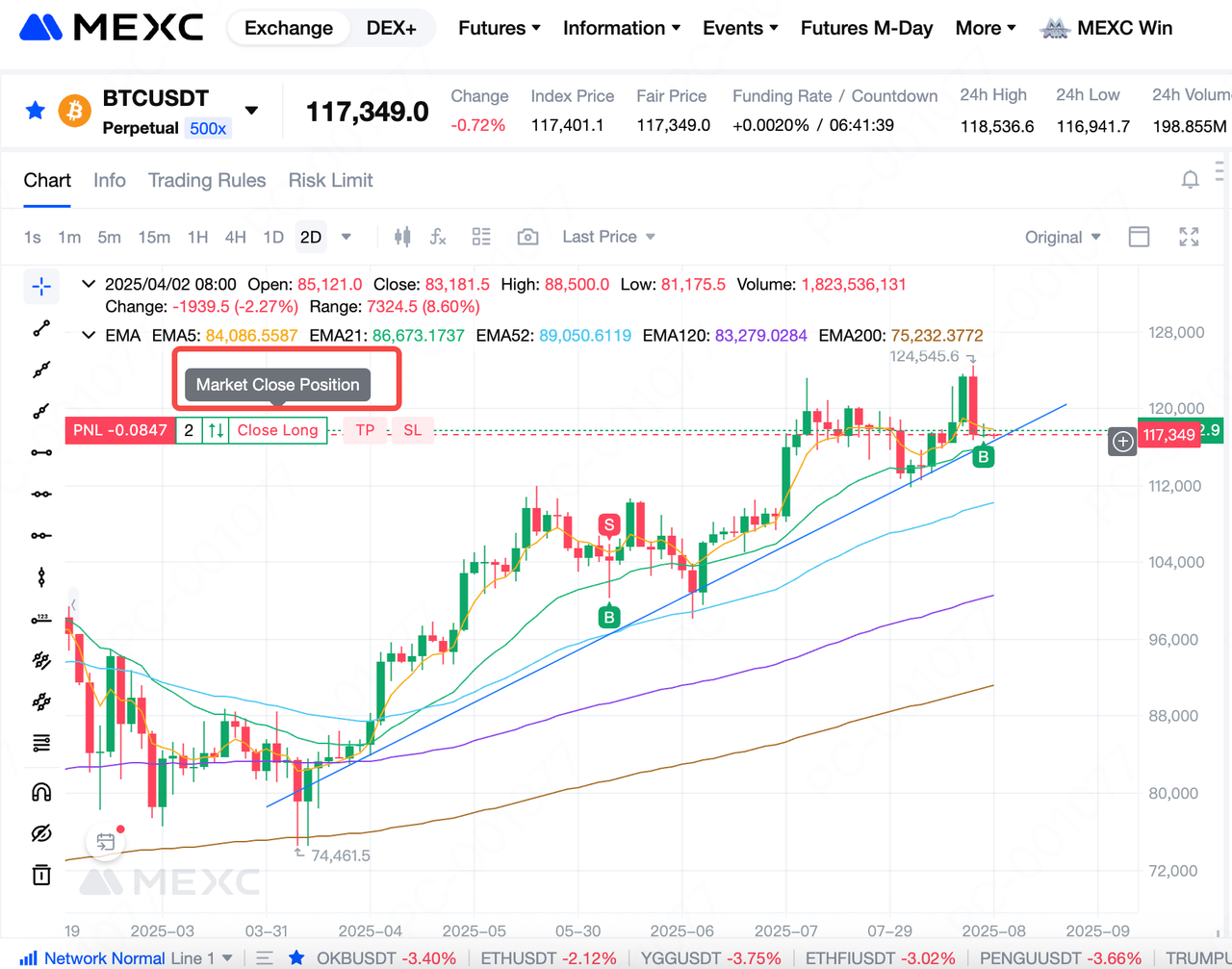 في تداول العقود الآجلة للعملات المشفرة، غالبًا ما تظهر الفرص وتختفي بسرعة. يأمل العديد من المستثمرين في التمكن من فتح أو إغلاق الصفقات مباشرةً على مخطط الشموع مع تحليل تحركات الأسعار لالتقاط تقلبات السوق. لتلبية هذه الاحتياجات، تدعم عقود MEXC الآجلة الآن التداول مباشرةً من مخطط الشموع. سترشدك هذه المقالة خلال العملية. حاليًا، لا يتوفر تداول مخطط الشموع إلا على إصدار الموقع الإلكتروني. تستخدم هذه المقالة واجهة الموقع الإلكتروني الخاصة بعقود USDT-M الآجلة لأغراض التوضيح.