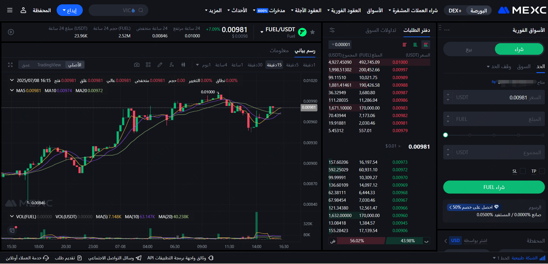 عملات FUEL متاحة الآن للتداول على منصة MEXC. يمكن للمستخدمين المهتمين بمنظومة Fuel Network الوصول إلى التوكن عبر التداول الفوري.
