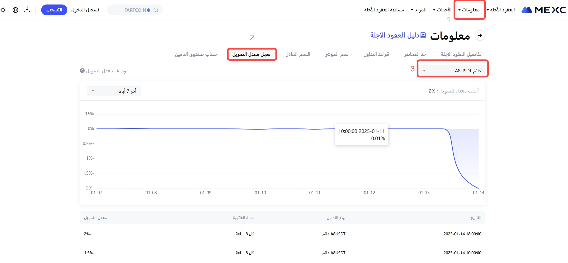 في الساعة 16:15، 14يناير 2025 (UTC)، قامت MEXC بتعديل وتيرة تسوية معدل تمويل عقود A8 USDT-M الآجلة الدائمة. أصبح معدل التسوية الجديد الآن مرة واحدة كل 4 ساعات. التفاصيل كما يلي: