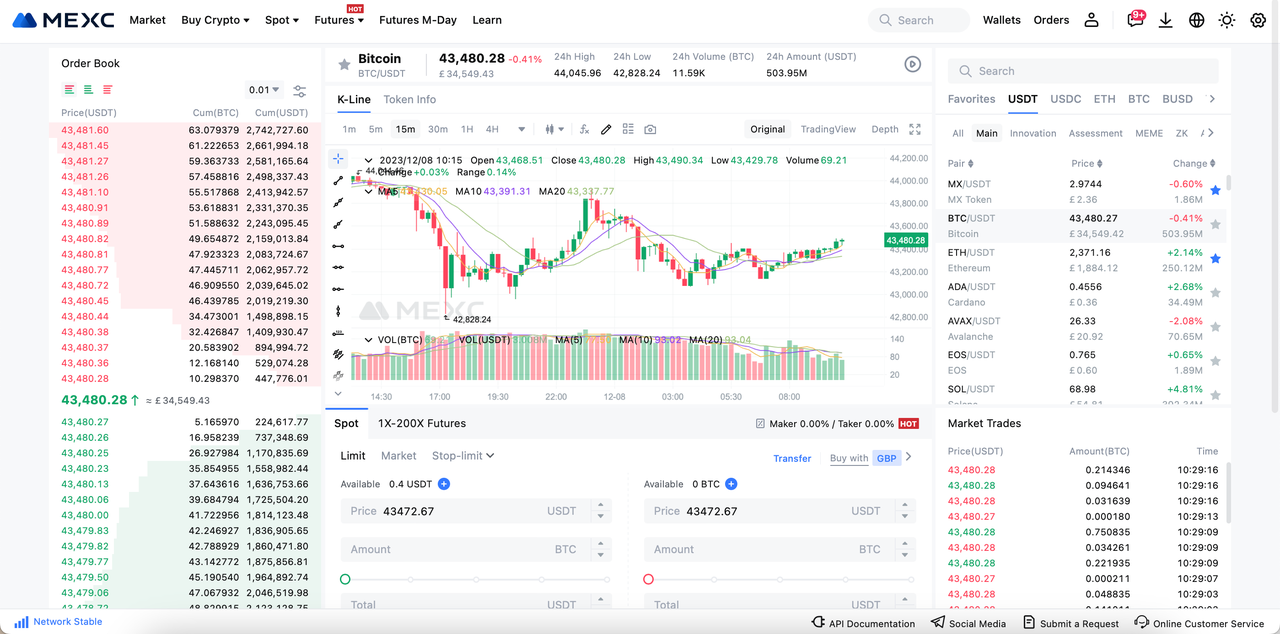 Es ist wichtig zu beachten, dass bei hoher Marktvolatilität der endgültige Ausführungspreis eines Marktauftrags vom zunächst angezeigten Preis abweichen kann. Wenn zum Beispiel der aktuelle Preis von MX bei 2,94 USDT liegt und Sie einen Marktauftrag über 294 USDT erteilen, um 100 MX-Token zu kaufen, kann sich der Preis zwischen dem Zeitpunkt des Klicks und der tatsächlichen Ausführung ändern. Dadurch kann die tatsächlich erhaltene Menge an MX-Token von 100 abweichen.