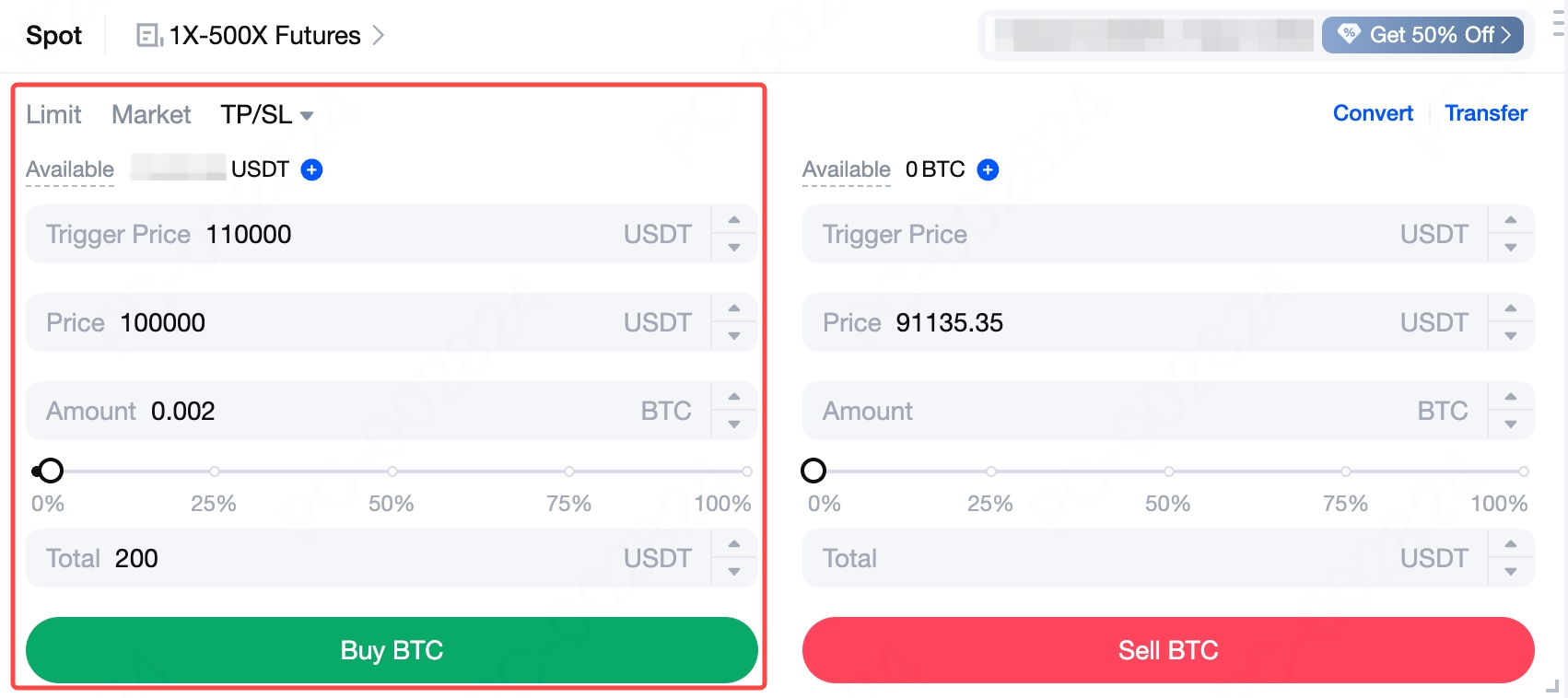 Zum Zeitpunkt der Erstellung dieses Dokuments werden OCO-Aufträge nur für bestimmte Token unterstützt, darunter BTC. Wir verwenden BTC als Beispiel: