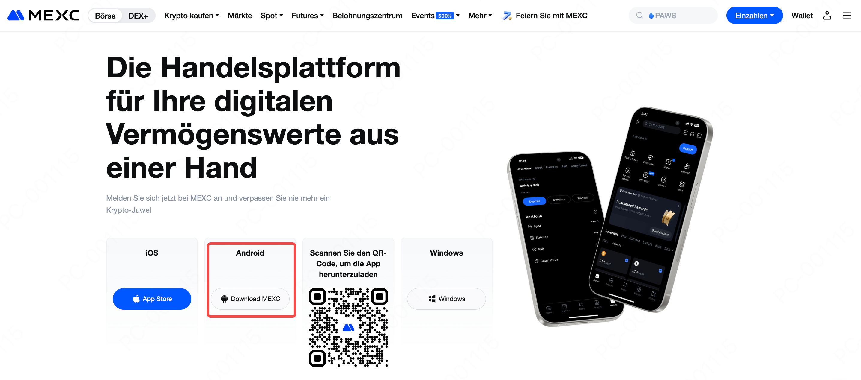 Sie können auch die Webversion von MEXC nutzen, die über den Webbrowser Ihres Handys oder Computers zugänglich ist. Offizielle Website-Links: