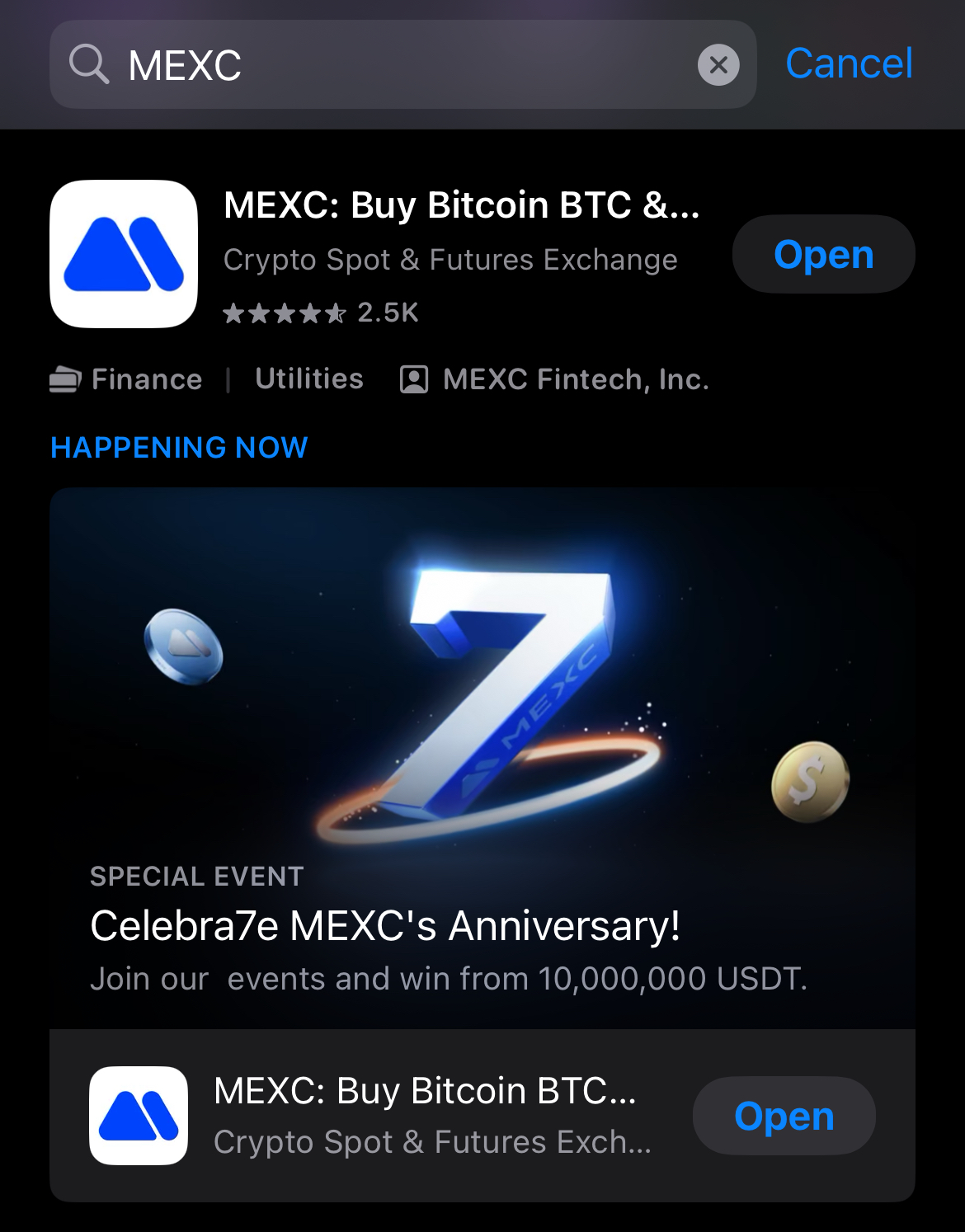 Öffnen Sie den Apple App Store auf Ihrem Smartphone, suchen Sie in der Suchleiste nach der MEXC-App und tippen Sie auf Installieren. Nach Abschluss der Installation ist die App einsatzbereit.