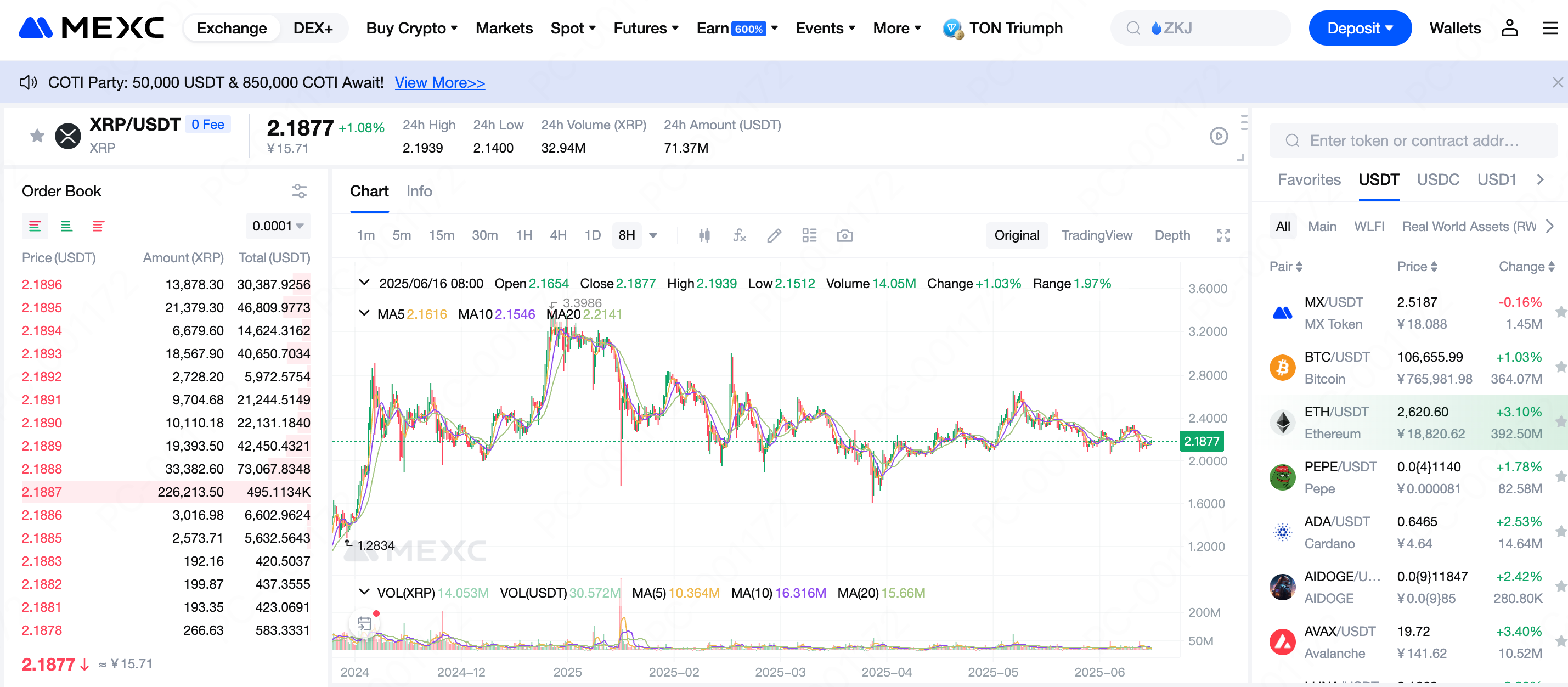 MEXC se destaca como la plataforma líder para operar XRP, ofreciendo una liquidez excepcional, una sólida profundidad de libro de órdenes y tarifas de trading ultra competitivas. Proporciona abundante liquidez, libros de órdenes profundos y tarifas de trading ultra bajas, lo que permite a los inversionistas disfrutar de una experiencia de trading eficiente mientras minimizan costos y maximizan ganancias. Puedes tradear tokens XRP en MEXC con tarifas altamente competitivas.