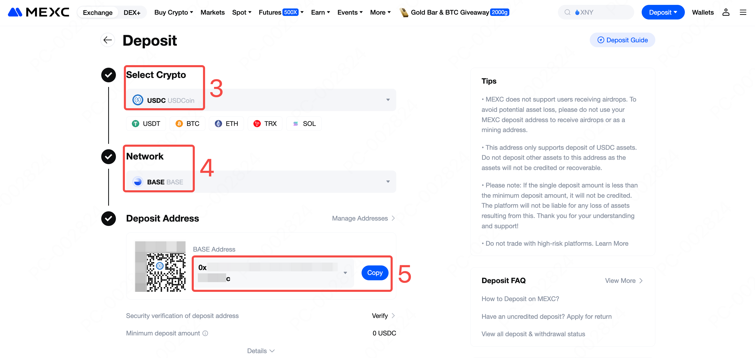 - Coincidencia de la red: La red de depósito en MEXC debe coincidir con la red de retiro en tu billetera o plataforma de intercambio. Si las redes son diferentes, tus activos pueden perderse permanentemente.