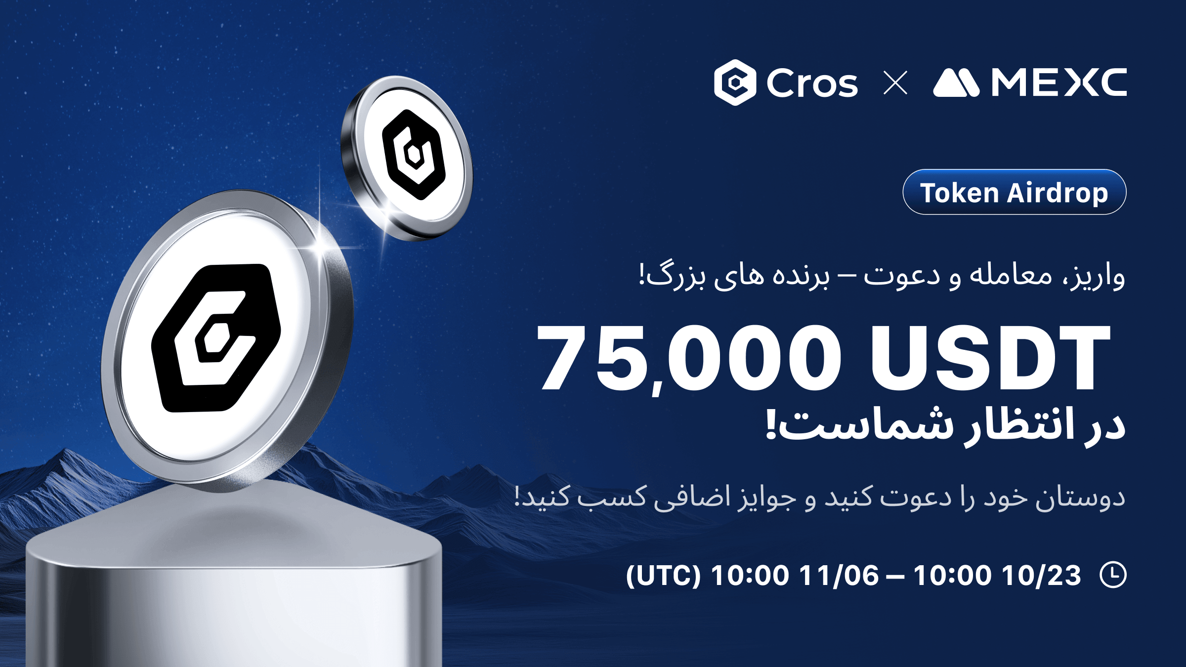 برای جشن لیست شدن Cros (CROS)، MEXC یک رویداد پاداش برای کاربران جدید و قدیمی راهاندازی کرده است. با کمال میل شما را به شرکت در این رویداد دعوت میکنیم!