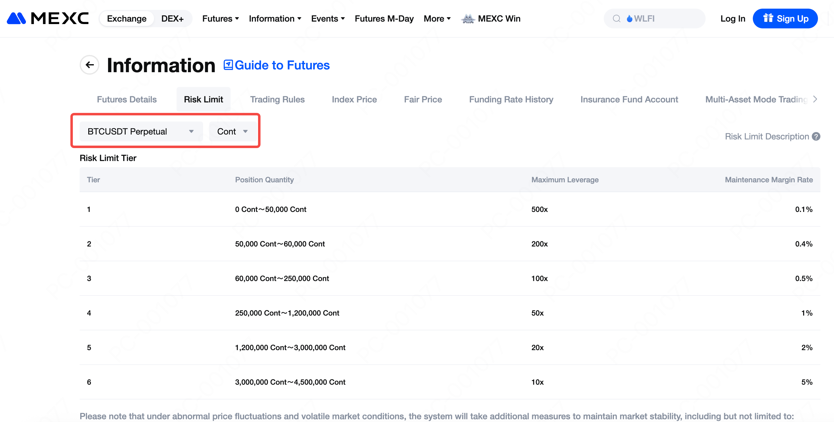 برای آگاهی از محدودیت های ریسک در معاملات فیوچرز، کاربران میتوانند از وب سایت رسمی MEXC یا اپلیکیشن موبایل استفاده کنند. در هر دو نسخه، امکان مشاهده جزئیات کامل مربوط به سطوح ریسک لیمیت (Risk Limit Tiers) برای جفتارزهای مختلف فیوچرز دائمی فراهم شده است.