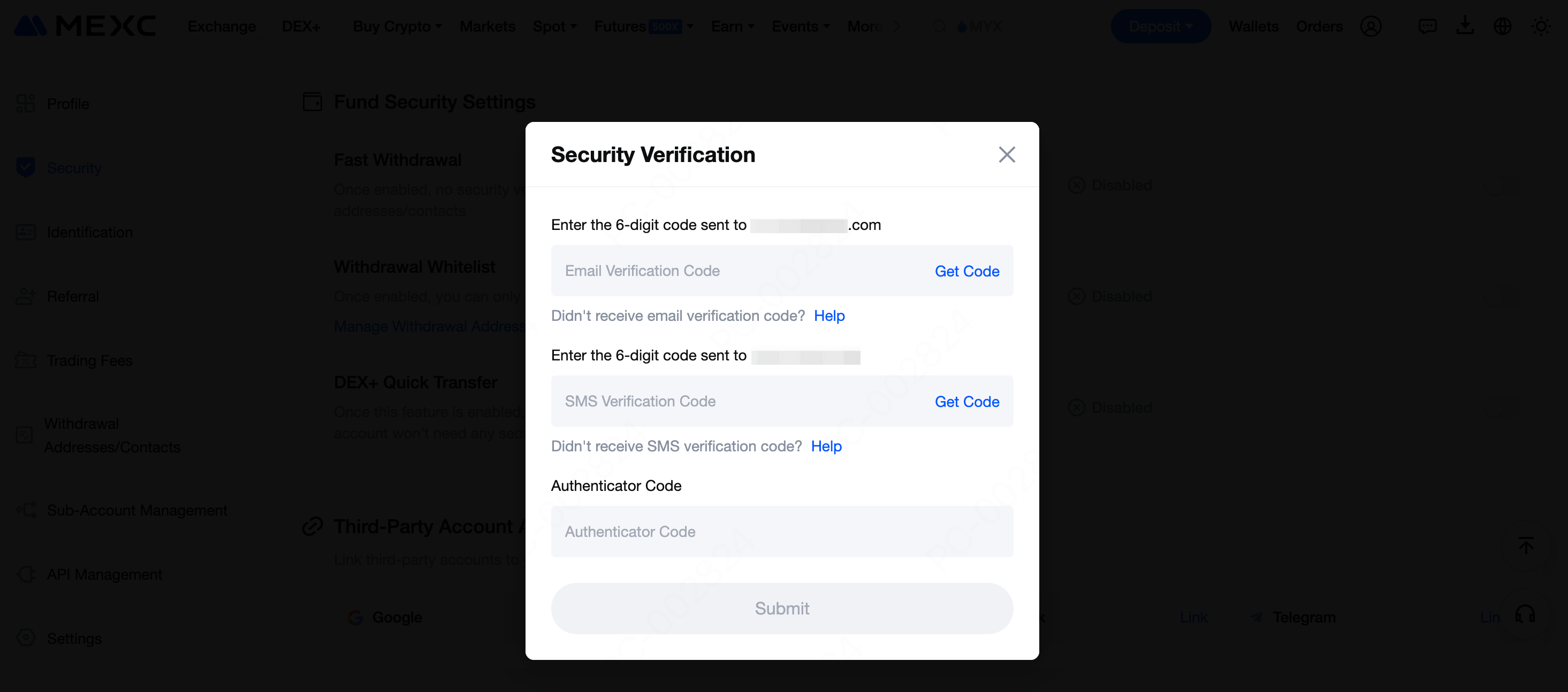اطلاعات تأیید امنیتی را پر کنید و دوباره روی تأیید کلیک کنید تا ویژگی انتقال سریع +DEX فعال شود.