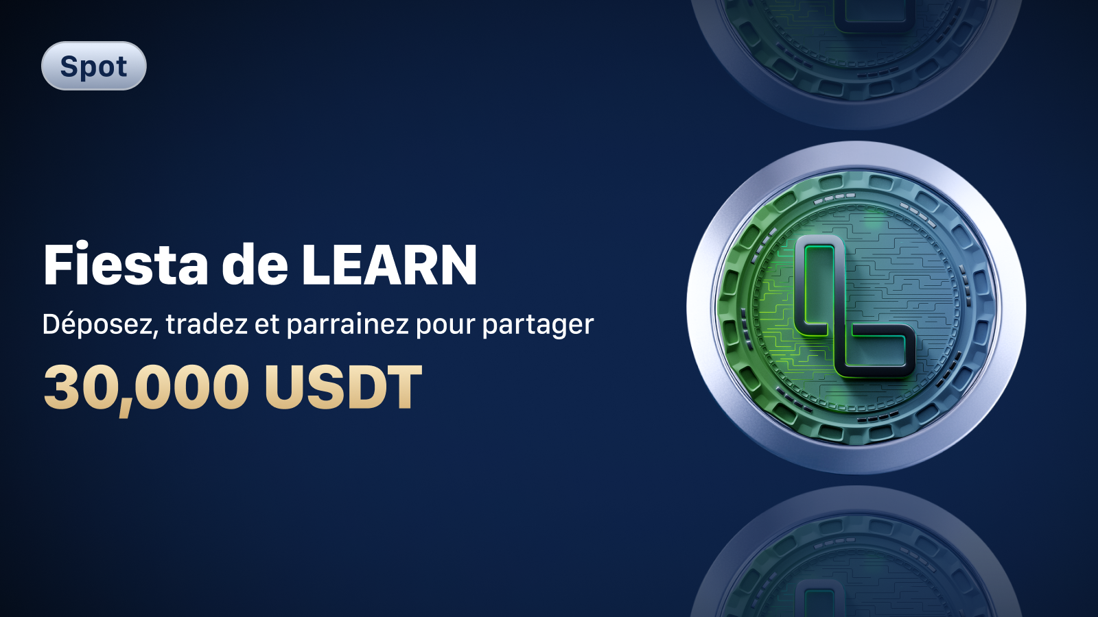 Tâche 2 | Atteignez un volume de trading au comptant d'au moins 500 USDT sur la paire LEARN/USDT et maintenez une détention totale au comptant d'au moins 100 USDT (en n'importe quel token) à la fin de l'événement. | Partagez 8,000 USDT en proportion du volume de trading individuel de LEARN/USDT (Les récompenses individuelles sont plafonnées à 500 USDT). |