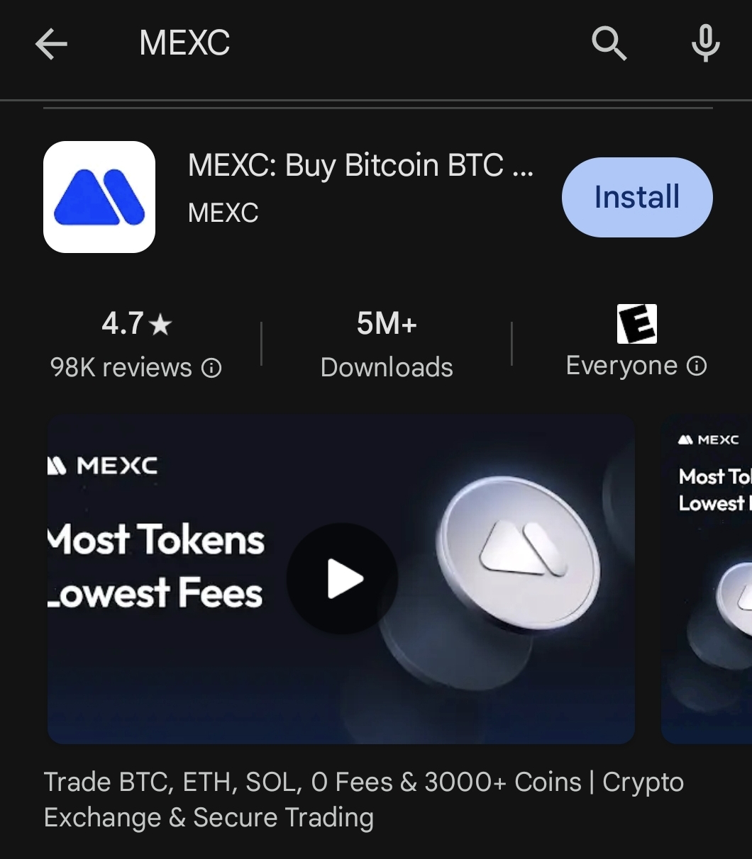 Ouvrez le Google Play Store sur votre téléphone, recherchez l'application MEXC dans la barre de recherche, puis appuyez sur « Installer ». Une fois l'installation terminée, l'application sera prête à être utilisée.