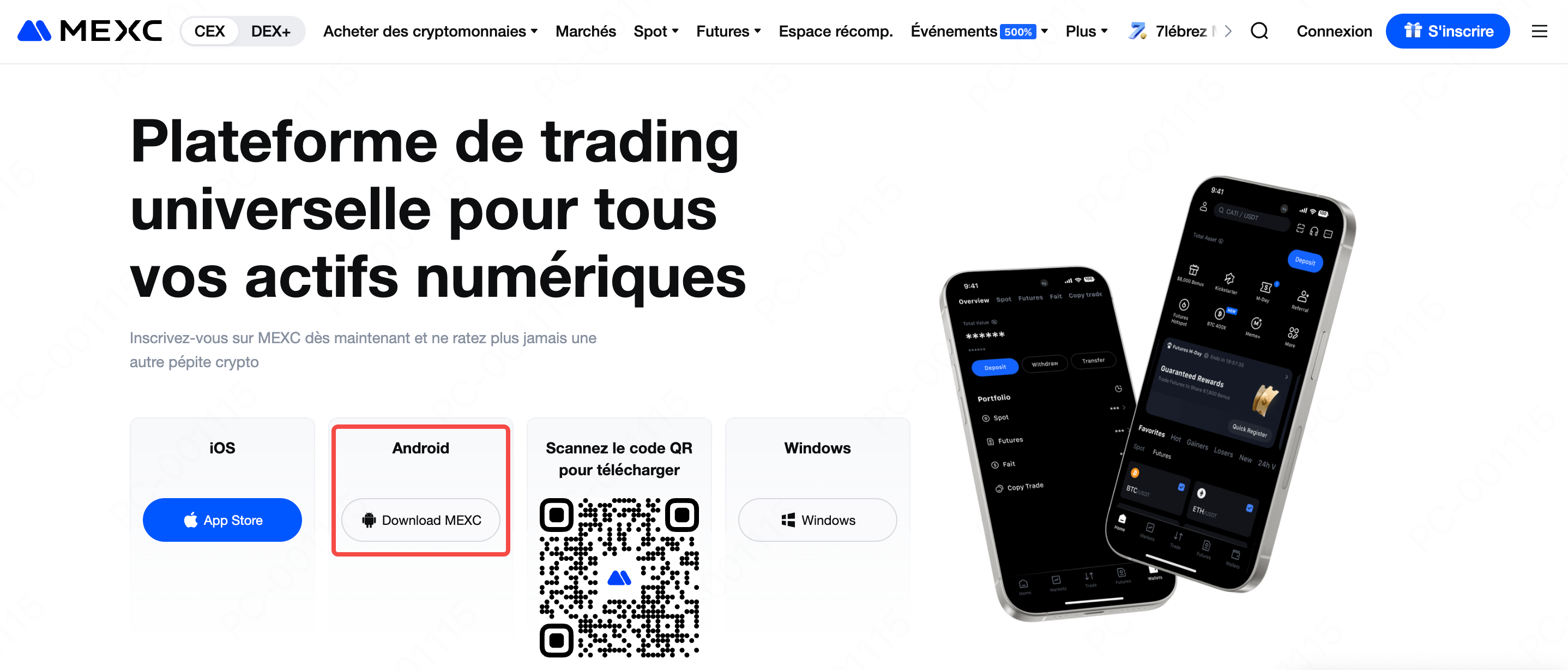 Vous pouvez également utiliser la version web de MEXC, accessible depuis le navigateur de votre téléphone ou de votre ordinateur. Liens vers le site officiel :