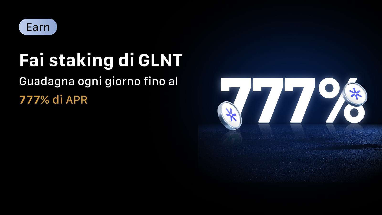È ora di far lavorare di più le tue criptovalute! MEXC è orgogliosa di presentare l'evento Fai staking per guadagnare GLNT con i suoi Risparmi fissi cross-asset. Cogli questa opportunità per guadagnare fino al 777% di APR facendo staking di GLNT o USDT!