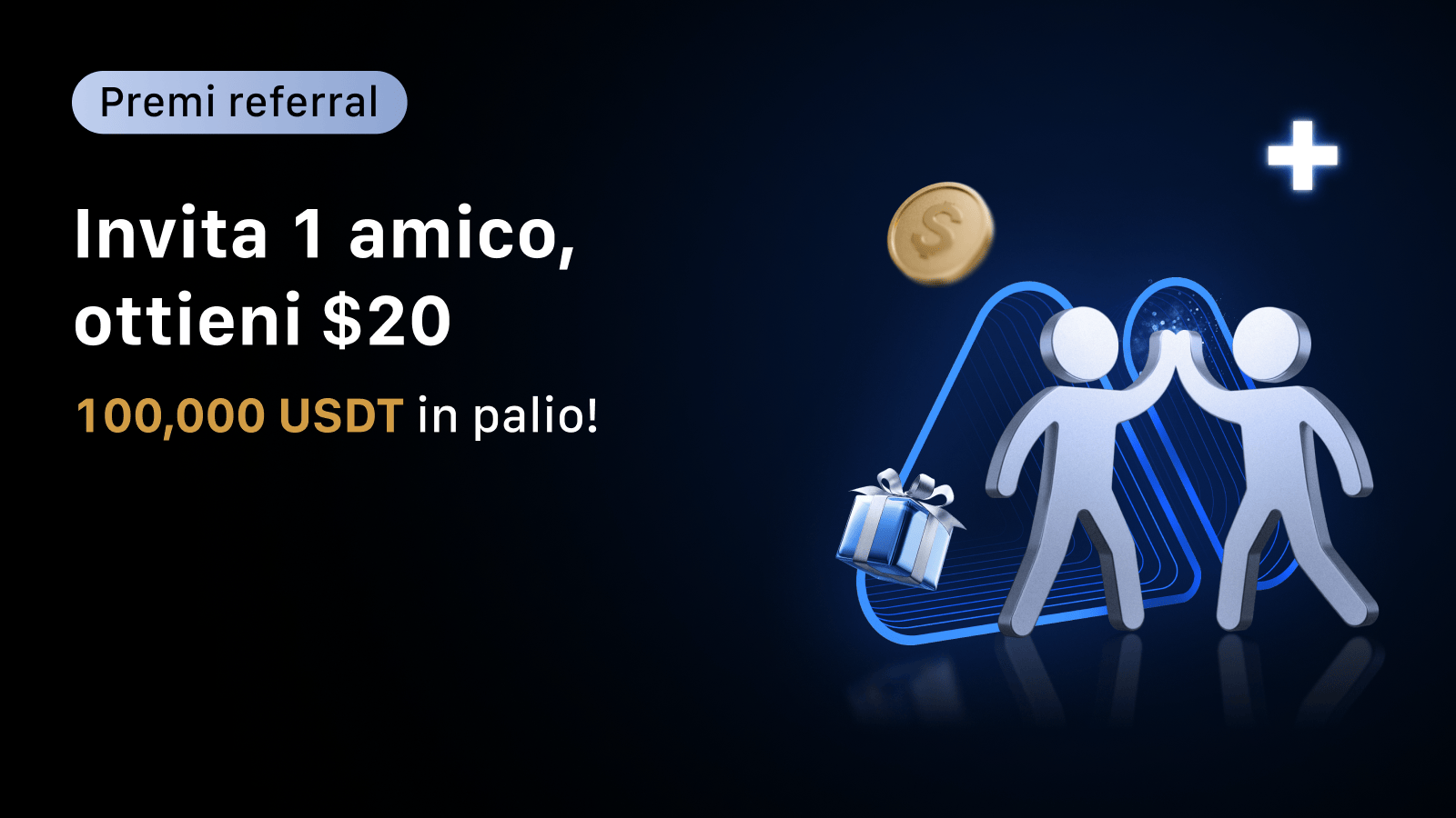 · Una volta che il tuo amico diventa un invitato qualificato, riceverete entrambi un bonus futures di 20 USDT.