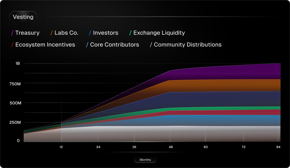 Categoria | Percentuale sbloccata al TGE | Periodo di lock-up | Percentuale di sblocco cliff iniziale | Durata del vesting | Programma di vesting |