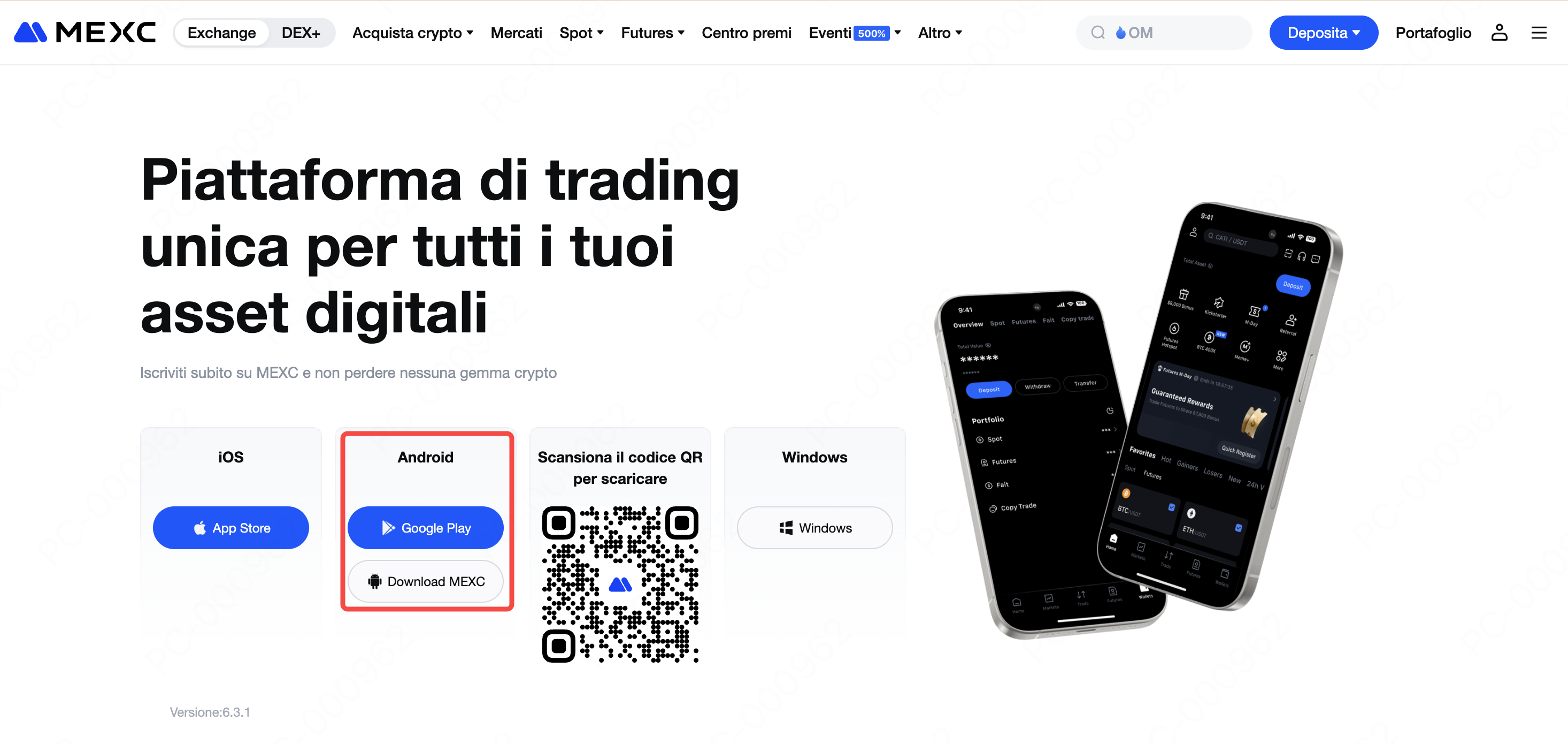 Puoi anche usare la versione web di MEXC, accessibile tramite il browser del tuo telefono o computer. Link al sito web ufficiale: