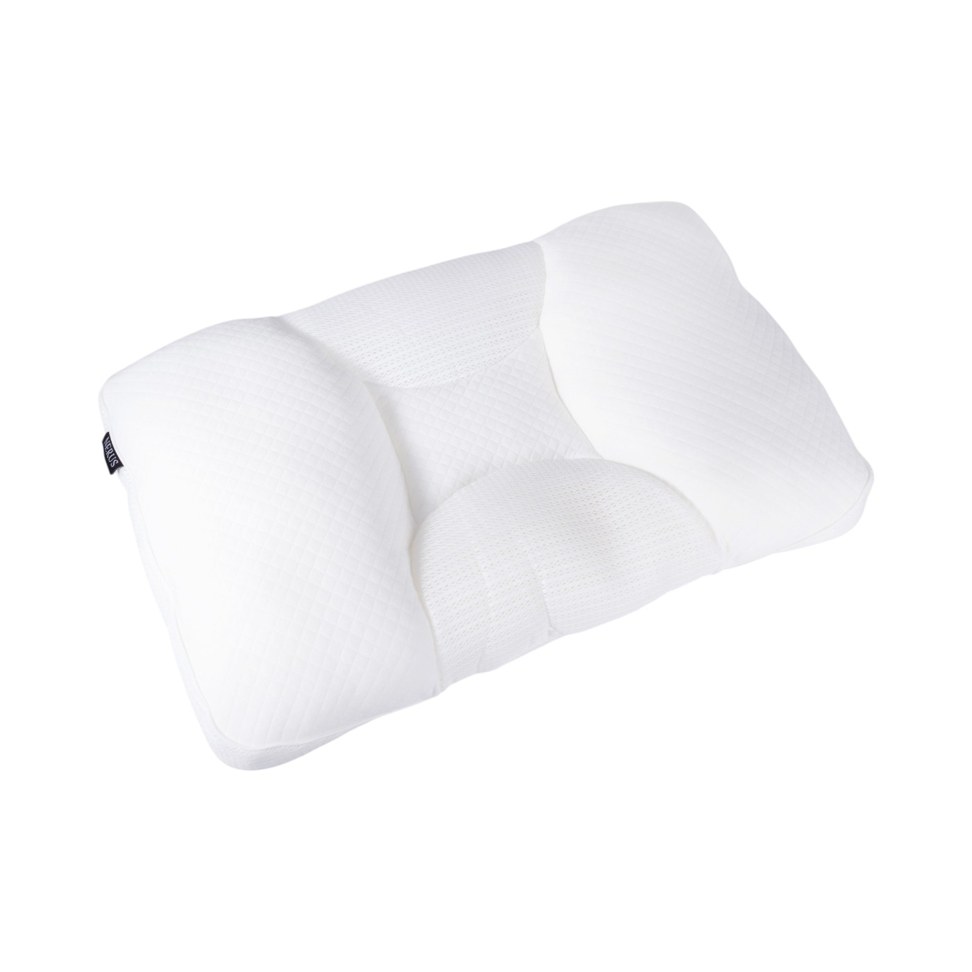 エアウィーヴの「ピロー S-LINE」は、仰向けでも横向きでも高さをキープしやすいように、硬さを両サイドと中央で変化させているのが特徴。中材には90%以上が空気でできているエアファイバーを使用し、高い通気性を実現しています。また、枕本体はシャワーで水洗いができ清潔に保ちやすいことも特徴です。検証に参加したモニターからは「高さはほどよく肩への圧迫感が少なかった」「硬めの寝心地で、寝返りをスムーズに行えた」というコメントがありました。一方で、エアファイバーの硬めな質感に対し、耳への圧迫感を覚えた人も。気になる人はタオルを挟むと圧迫感は軽減されるでしょう。