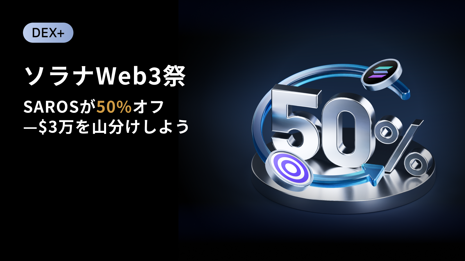 これを記念して、MEXCとSarosは共同で特別イベント、ソラナWeb3祭を開催します!MEXC DEX+でSAROSを購入すると50%のキャッシュバックが受けられるほか、取引してUSDT、SAROS、先物ポジションのエアドロップが獲得できます!30,000 USDTの賞金プールを山分けしよう。