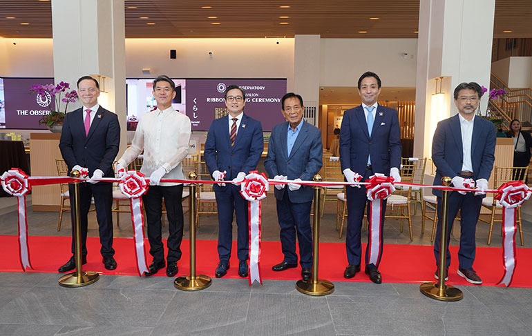 (L-R) Thomas Mirasol, Federal Land NRE Global, Inc. (FNG) President; His Excellency Endo Kazuya, Ambassador of Japan to the Philippines; Alfred Ty, Federal Land and FNG Chairman; Hon. Benjamin Abalos, Sr., former Mayor of Mandaluyong; Yusuke Hirano, Vice-Chairman of FNG; and Tomohiro Fukuda, Nikken Sekkei General Manager, led the ribbon-cutting ceremony of The Observatory Sales Pavilion in 2025.