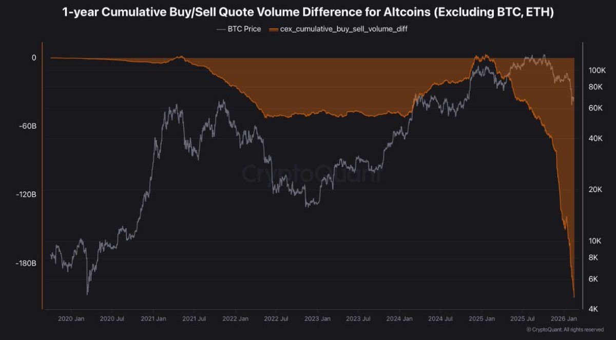 Ponadto, obecna sytuacja altcoinów łączy wysokie ryzyko z potencjalną okazją. Presja sprzedaży pozostaje silna, a napływ nowego kapitału jest ograniczony. Jednocześnie rynek jest mocno wyprzedany, a sentyment skrajnie negatywny.