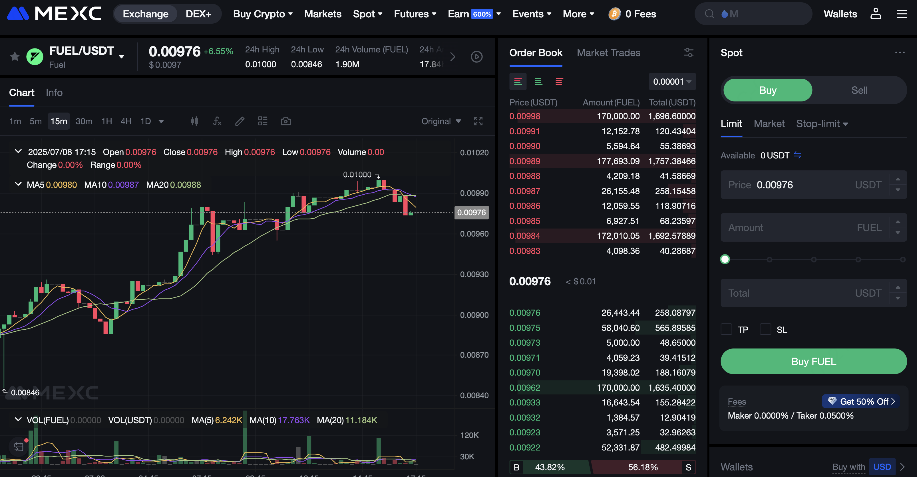 Os tokens FUEL já estão disponíveis para negociação na MEXC. Usuários interessados no ecossistema da Fuel Network podem acessar o token via negociação Spot: