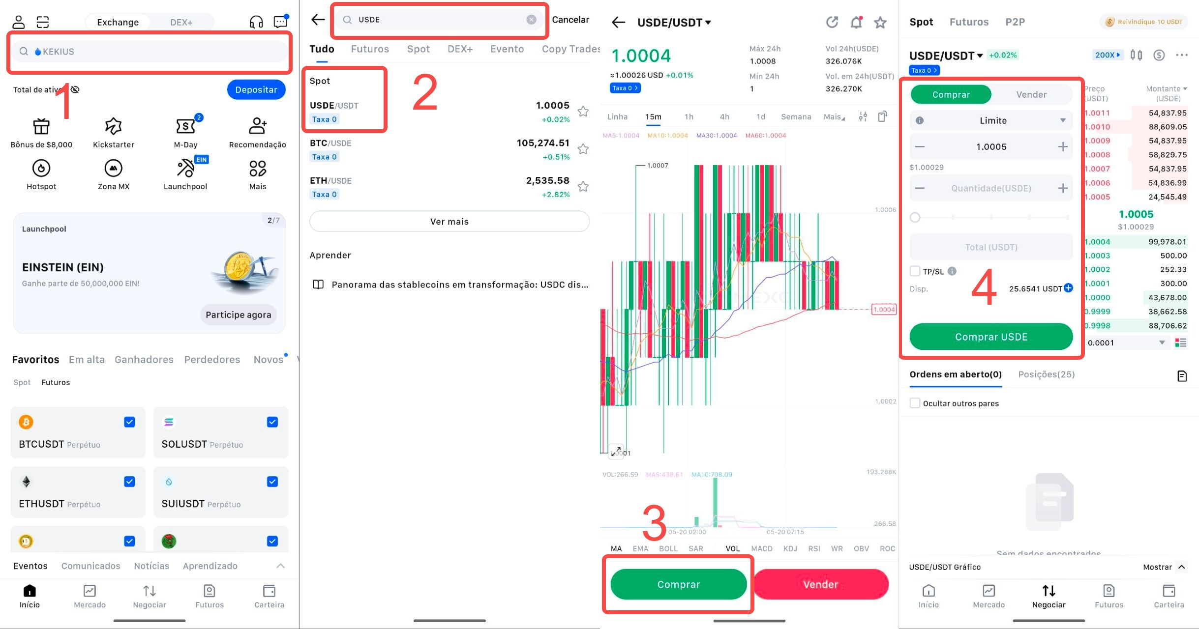 O token USDe está disponível para negociação na MEXC, com múltiplos pares de negociação. Pode comprar USDE/USDT da seguinte forma:
