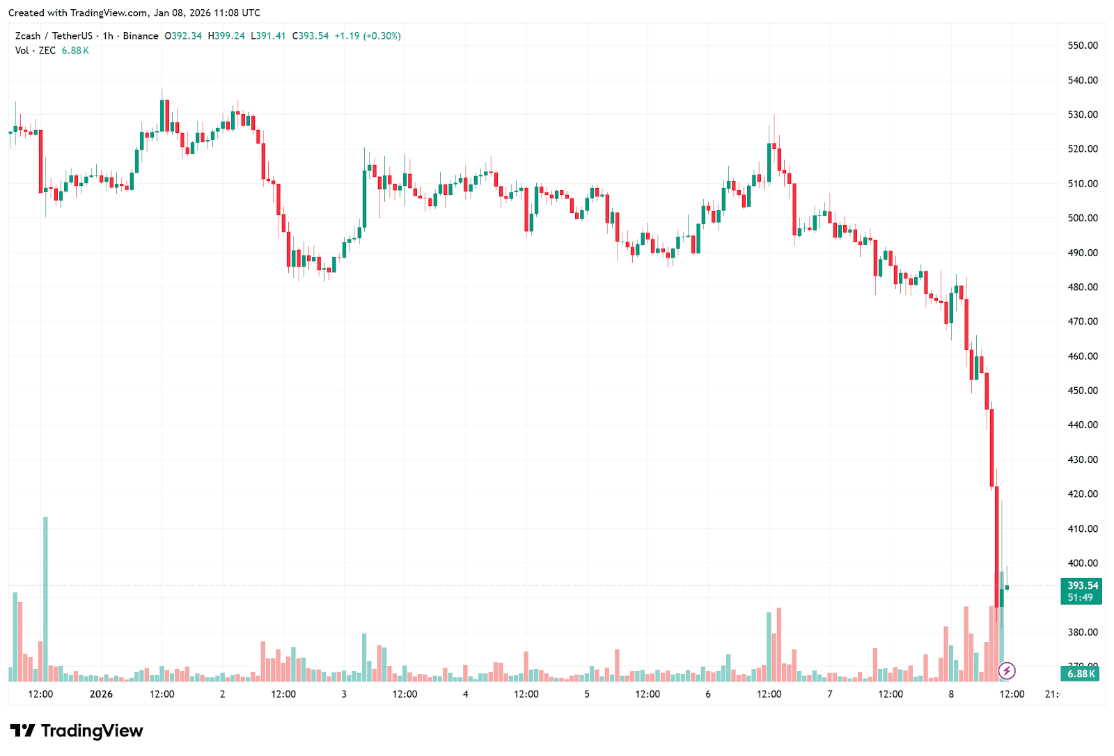 Часовой график ZEC/USDT на бирже Binance. Данные: TradingView.