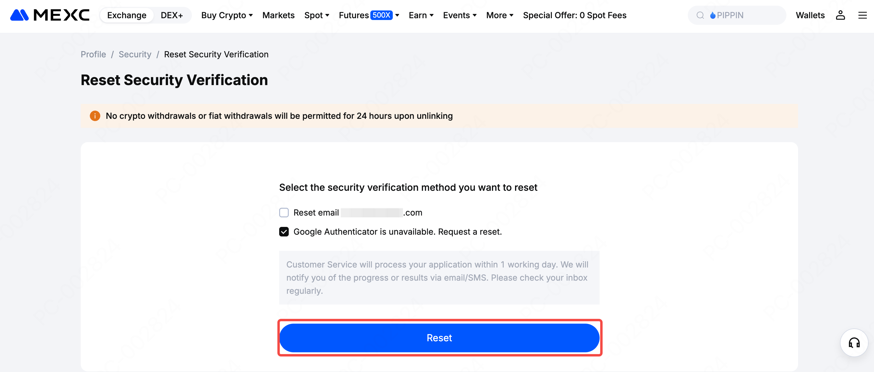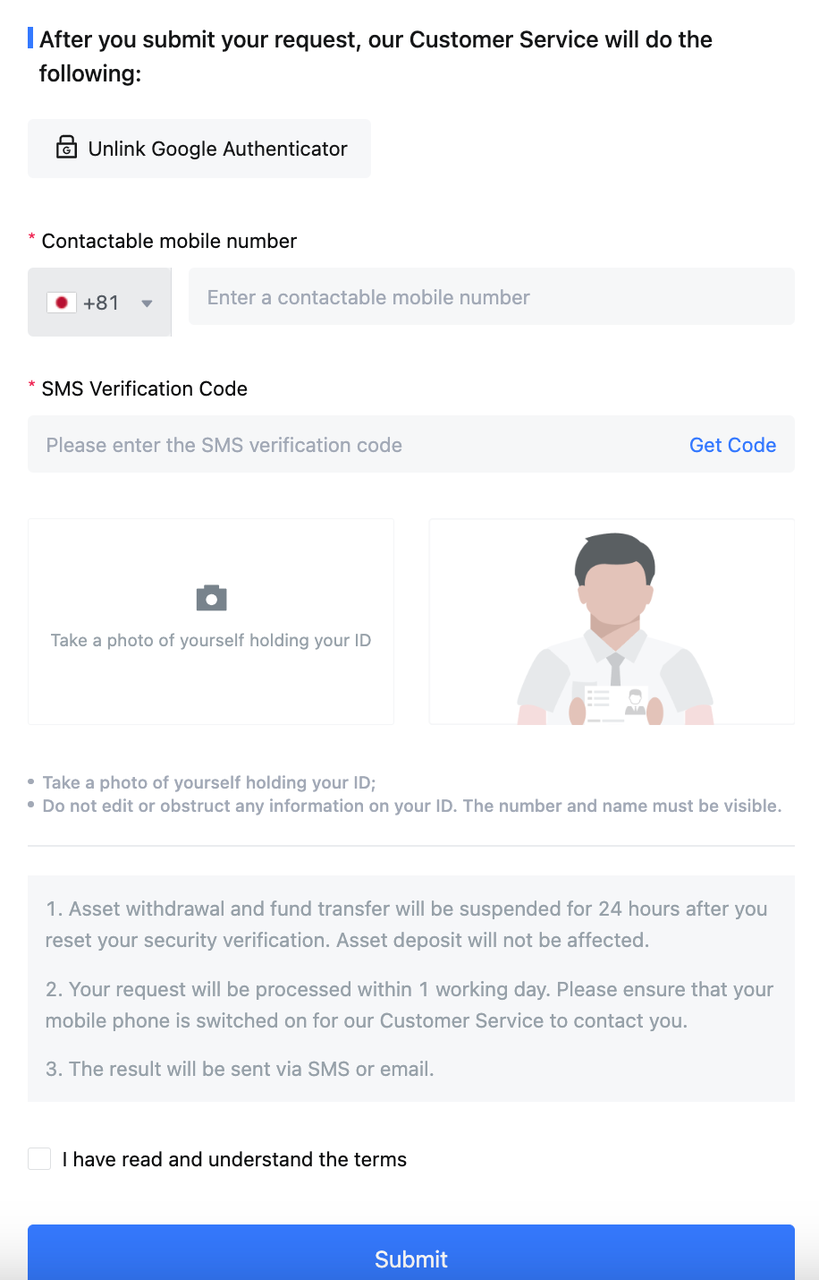 After submission, MEXC Customer Service will review your request. The review takes 1 business day. Once approved, your original Google Authenticator will be removed.