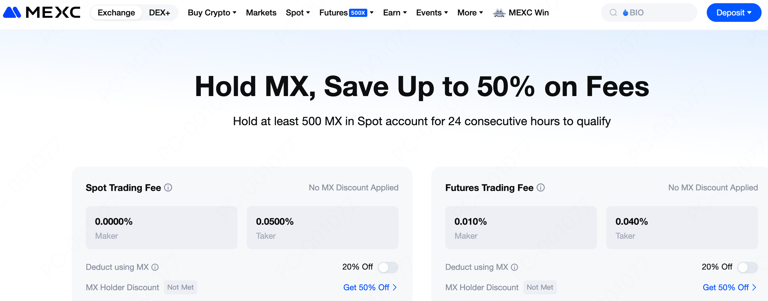 ณ วันที่ 30 สิงหาคม 2025 ค่าธรรมเนียมการเทรดมาตรฐานสำหรับ Coin-M ฟิวเจอร์ส คือ 0.01% สำหรับคำสั่ง Maker และ 0.04% สำหรับคำสั่ง Taker โดยการถือครองอย่างน้อย 500 MX ผู้ใช้สามารถรับส่วนลดค่าธรรมเนียมได้ถึง 50% โปรดทราบว่าอัตราค่าธรรมเนียมอาจแตกต่างกันไปในแต่ละประเทศและภูมิภาค ดังนั้นควรดูข้อมูลล่าสุดในหน้ากฎค่าธรรมเนียมการเทรดของ MEXC เสมอ