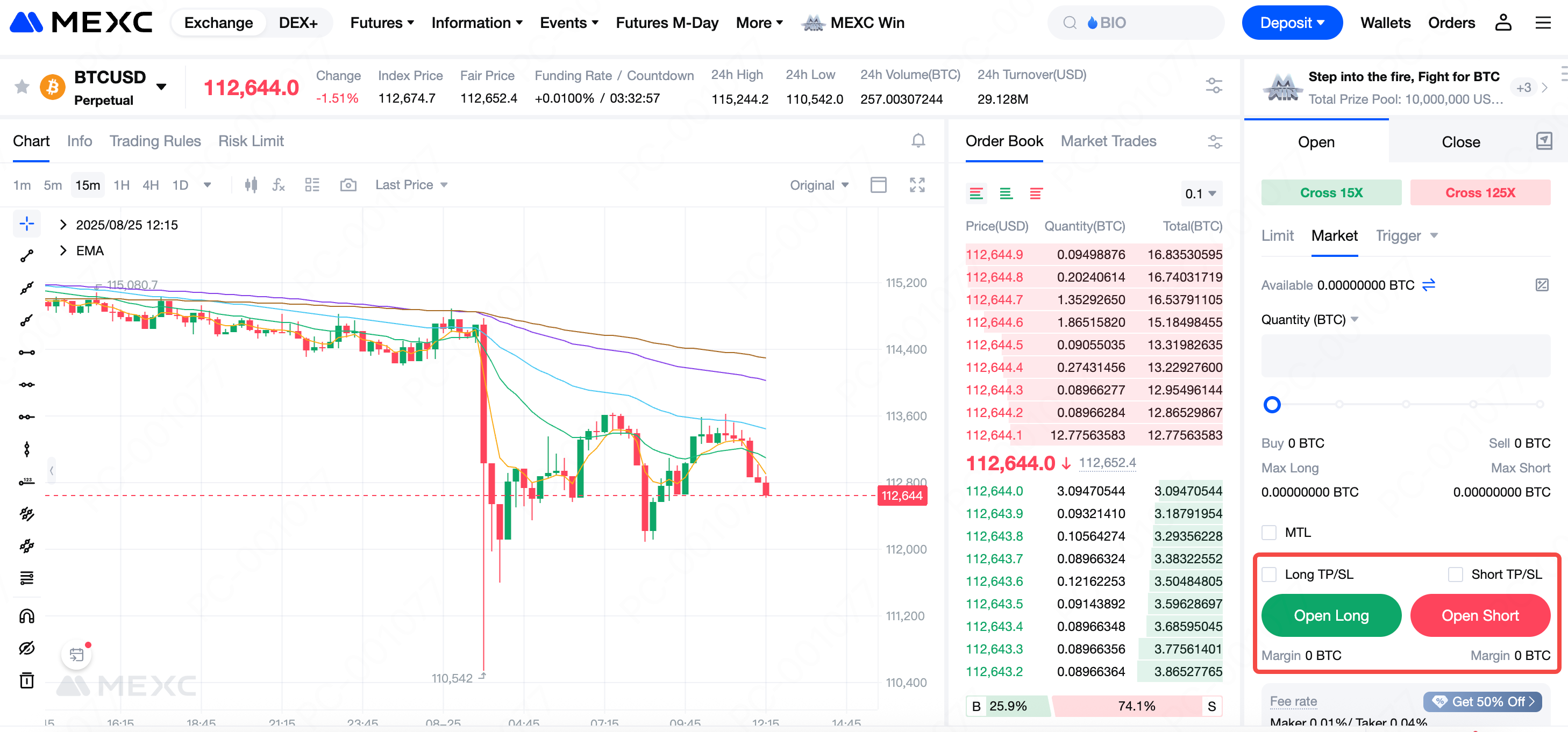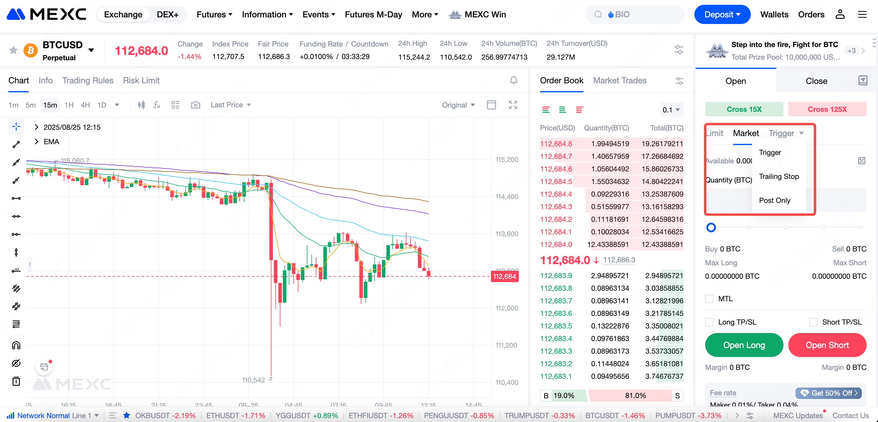 ต่างจาก MEXC USDT-M ฟิวเจอร์ส ที่อาจมีช่วงเลเวอเรจที่แตกต่างกันขึ้นอยู่กับคู่เงิน ทั้ง BTCUSD เพอร์เพทชวลฟิวเจอร์ส และ ETHUSD เพอร์เพทชวลฟิวเจอร์ส รองรับเลเวอเรจตั้งแต่ 1 เท่าถึง 125 เท่า
