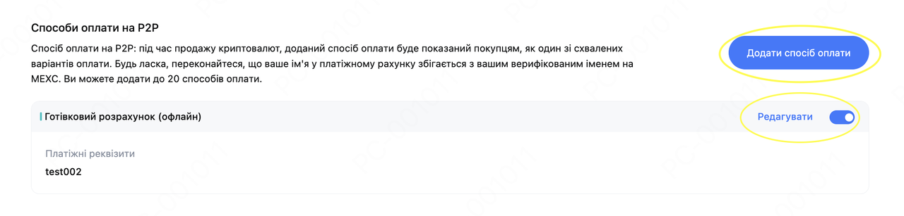 Перейдіть у [Центр користувача] - клацніть [Додати спосіб оплати] і виберіть спосіб оплати, якому ви надаєте перевагу. Ви можете редагувати реквізити платежу або вимкнути їх