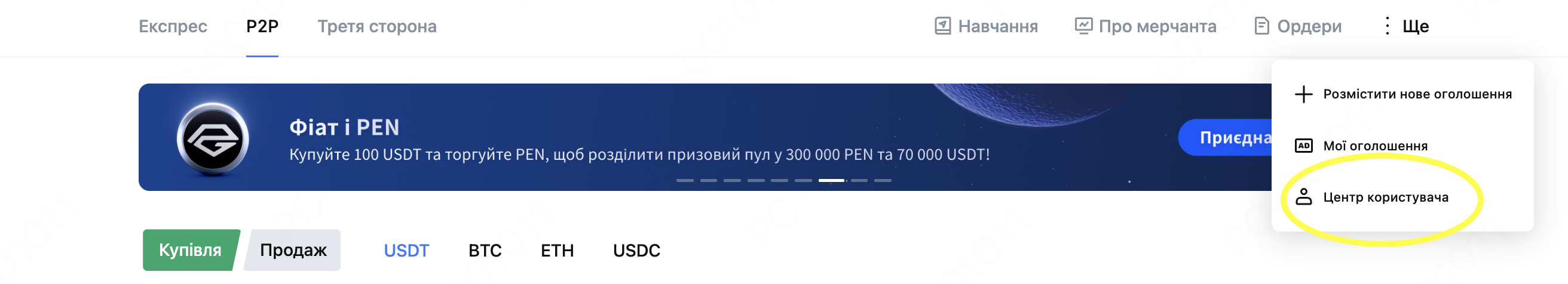 Перейдіть в [Центр користувача] і клацніть на сповіщення, які ви хочете використовувати. Ми рекомендуємо увімкнути більше сповіщень, щоб отримувати своєчасні оновлення про поточні P2P-ордери.
