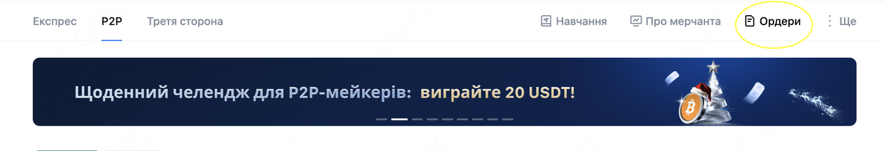 Ви можете переглянути свої ордери, клацнувши [Ордери] на головній сторінці P2P.
