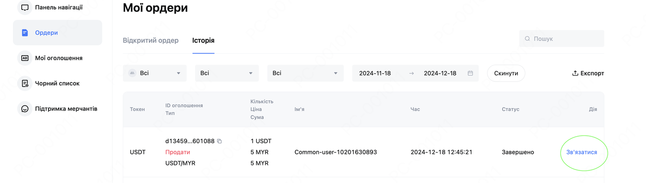 Перейдіть в [Ордери] - [Зв'язатися], а потім клацніть [Апеляція] під деталями ордера.