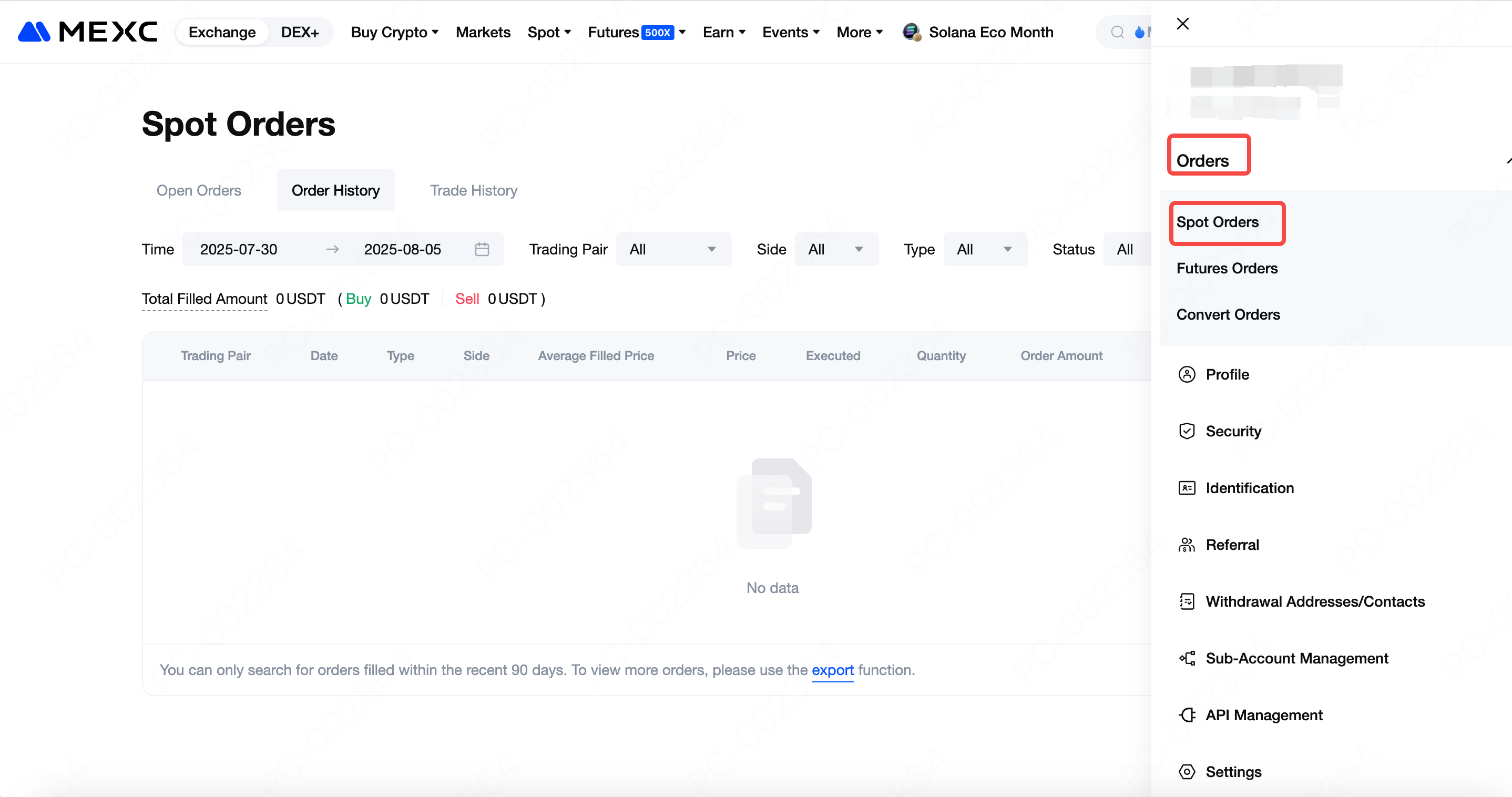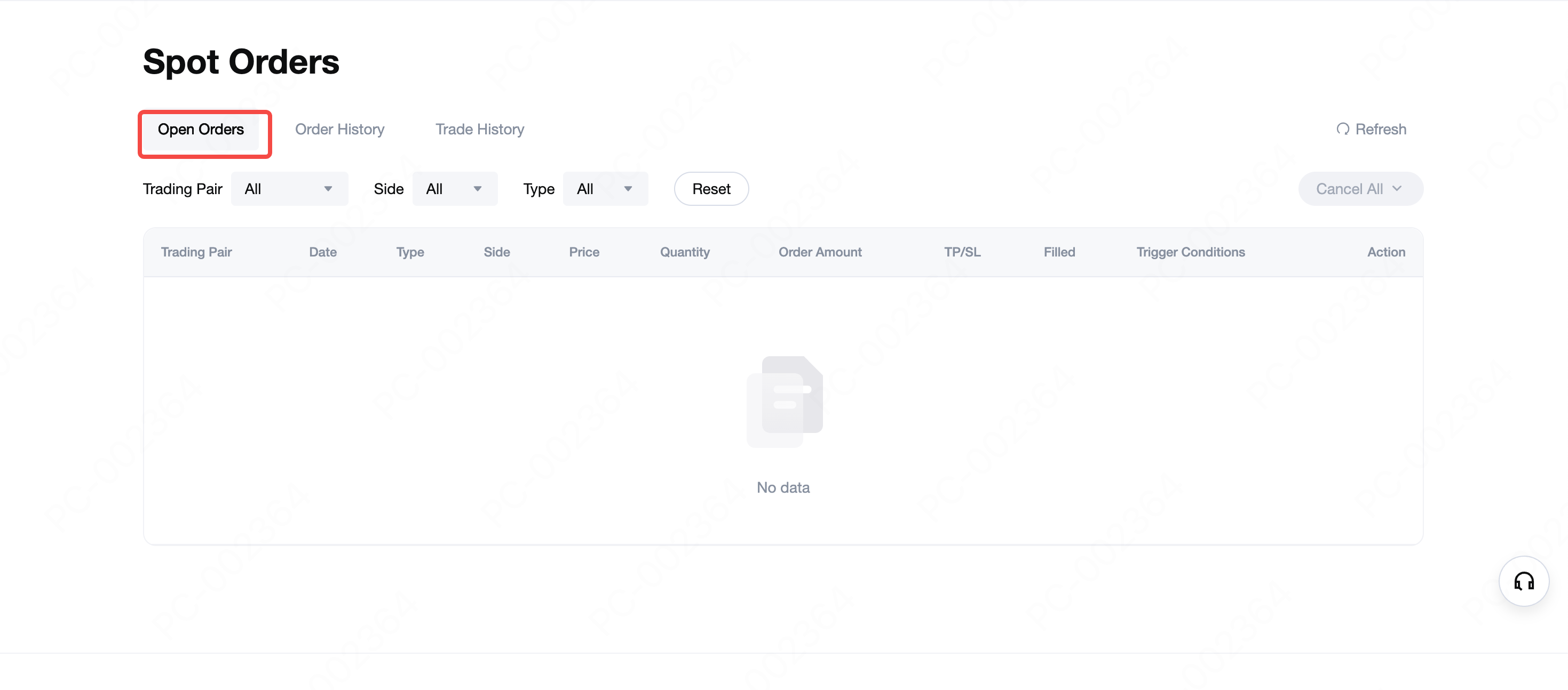 Ви можете переглянути історію виконаних ордерів у розділі Історія ордерів внизу книги ордерів. Крім того, ви можете клацнути Ордери → Спотові ордери у верхньому правому куті, щоб переглянути всі свої ордери.