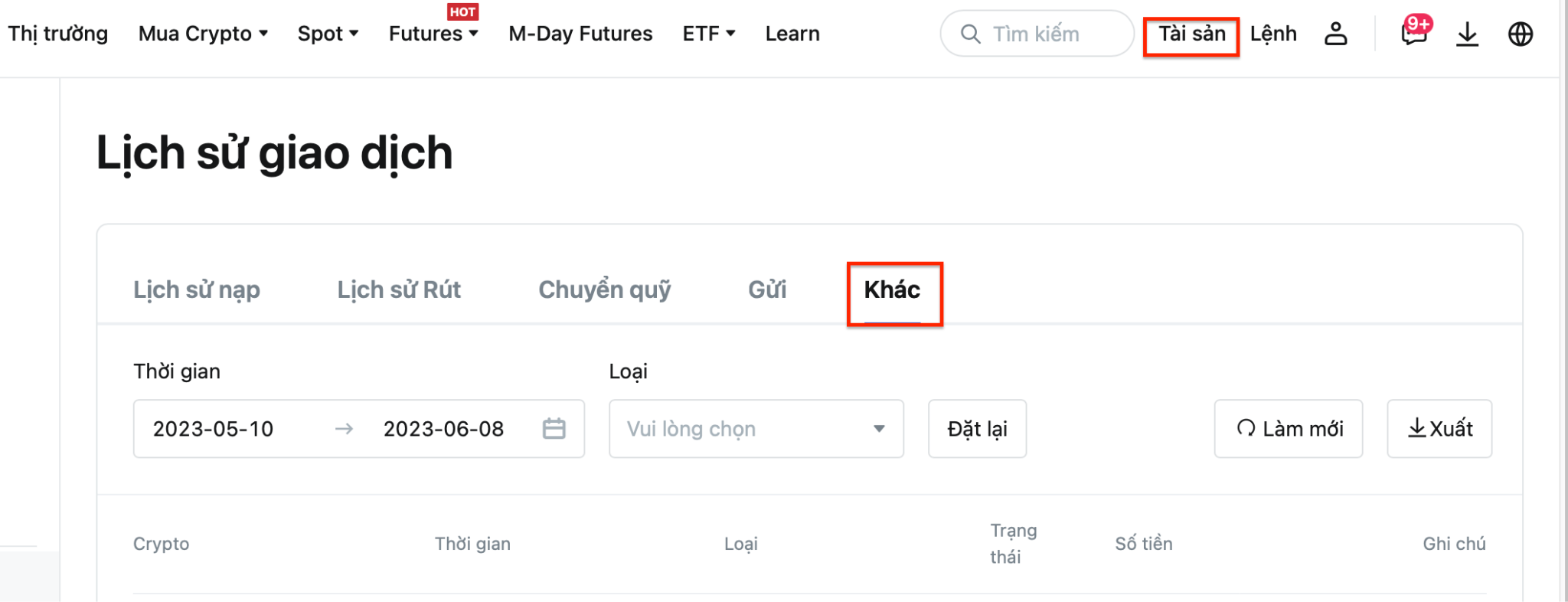 Đăng nhập vào tài khoản MEXC của bạn - Nhấp vào Ví - Nhấp vào Lịch sử - Nhấp vào Khác