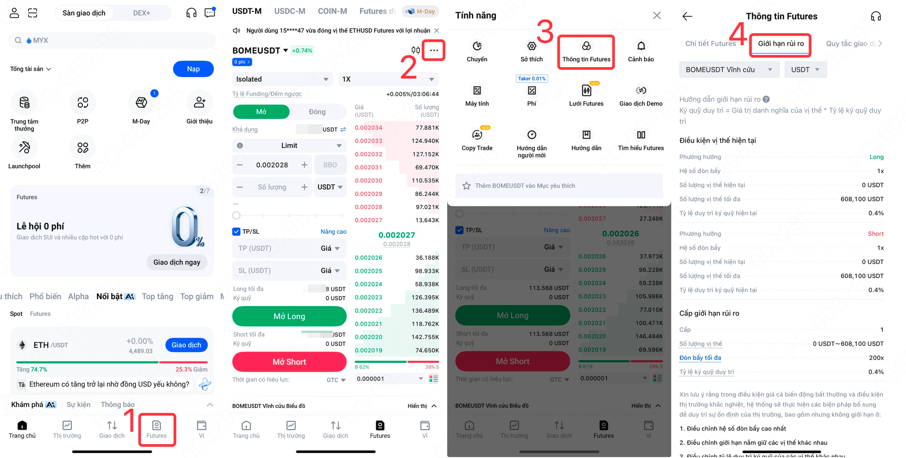 2) Trên trang giao dịch Futures, nhấn nút cài đặt [...] ở góc trên bên phải.
