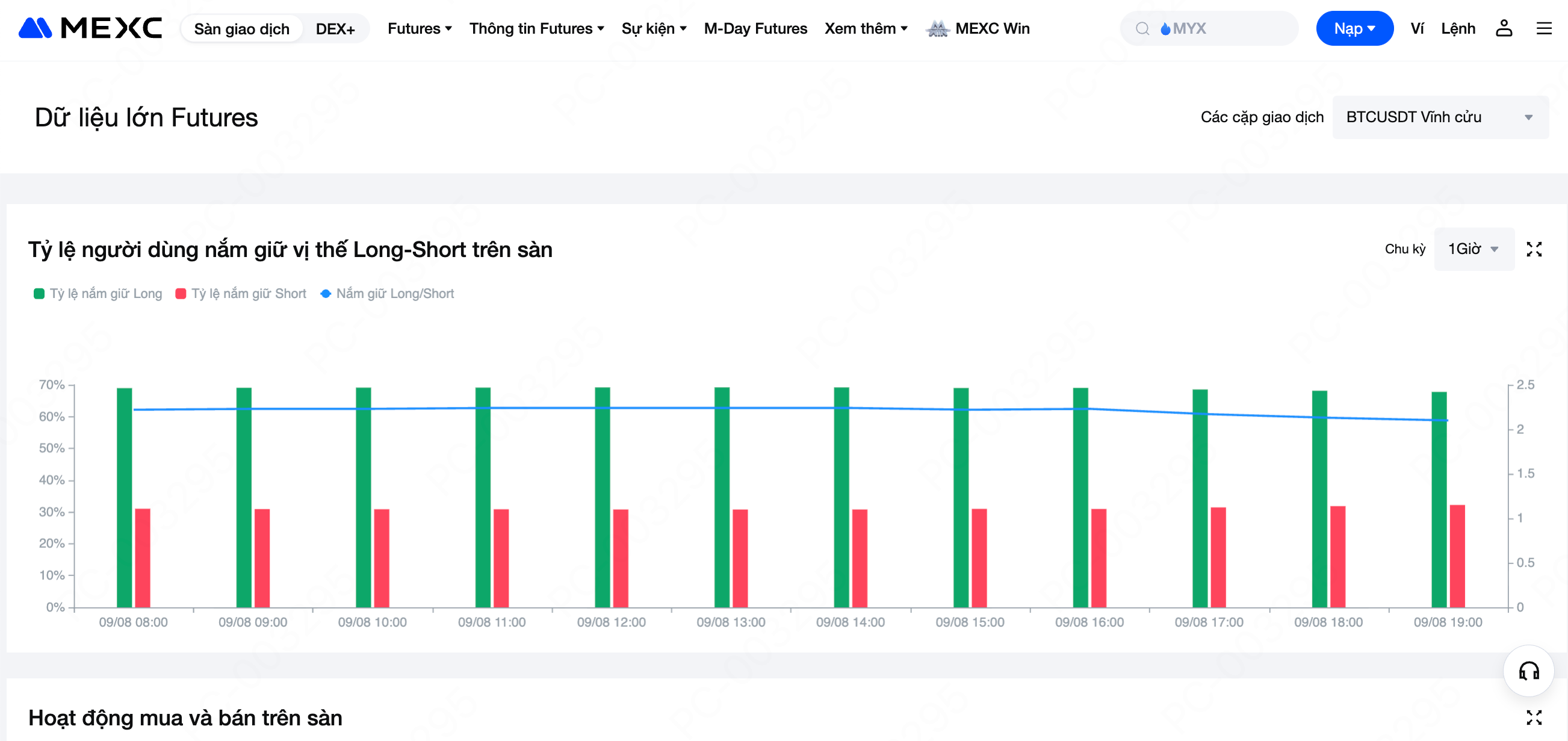MEXC cung cấp dữ liệu tỷ lệ Long/Short theo nhiều khía cạnh khác nhau. Để biết thêm chi tiết, vui lòng tham khảo: Phân tích dữ liệu Futures.