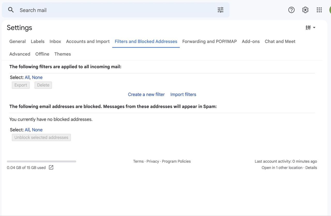 流程:【设定➡️查看所有设定➡️筛选器和封锁的地址】查看是否屏蔽MEXC邮件,如有设置屏蔽MEXC域名或邮箱,请将MEXC域名进行删除