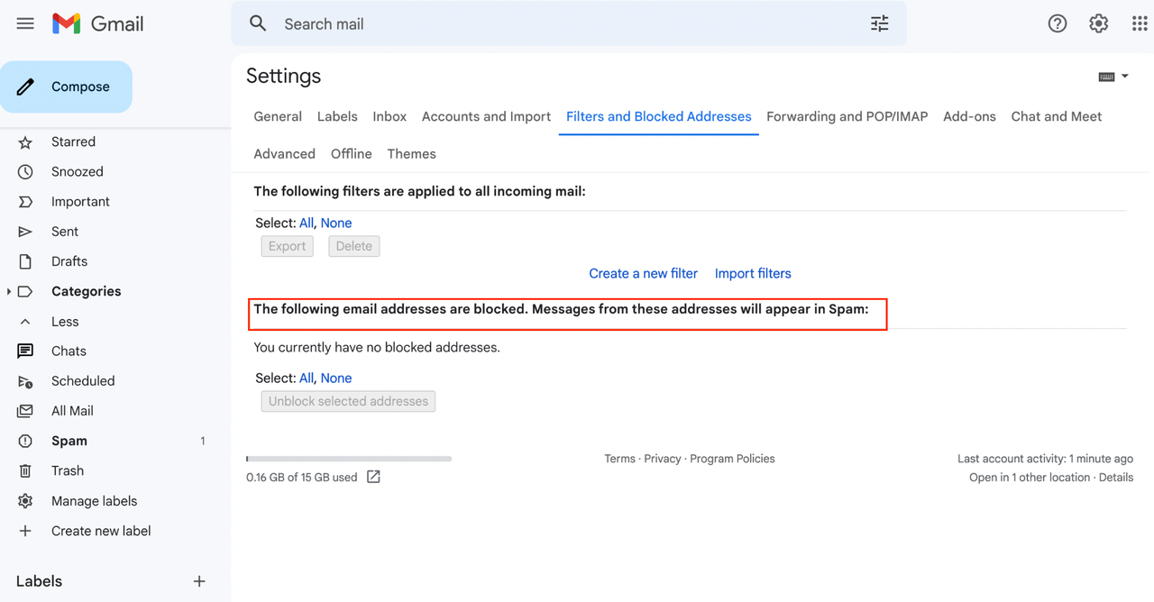 根据流程提示检查 Gmail 邮箱是否设定拦截: