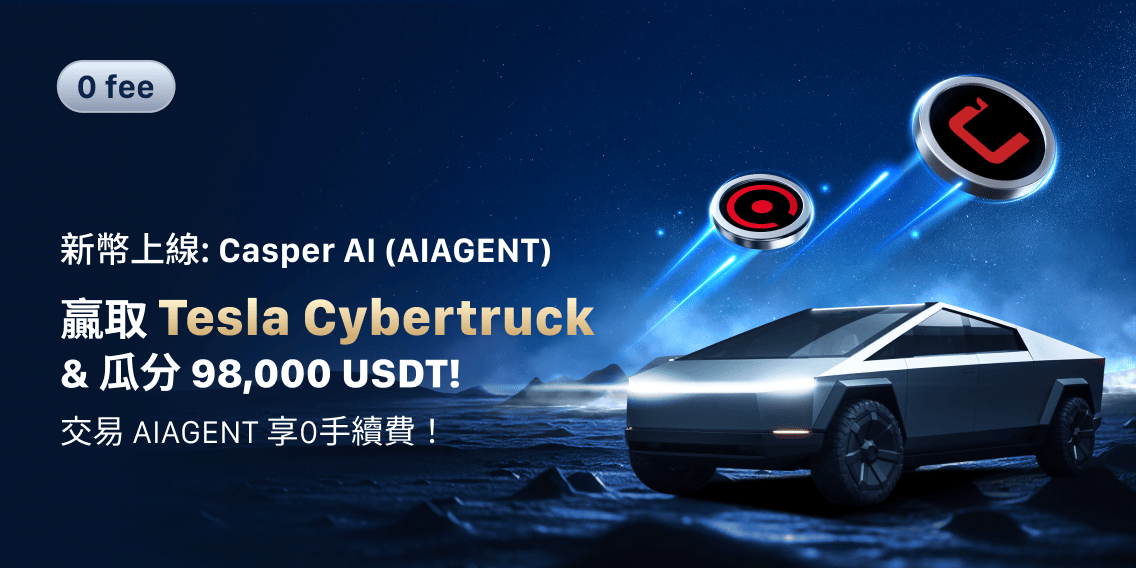 為慶祝 Casper AI (AIAGENT) 上線,MEXC 為新老用戶推出了特別的獎勵活動!交易 AIAGENT/USDT 現貨享 0 手續費,還有機會贏取特斯拉 Cybertruck,瓜分 98,000 USDT 獎池!獎勵豐厚,莫失良機