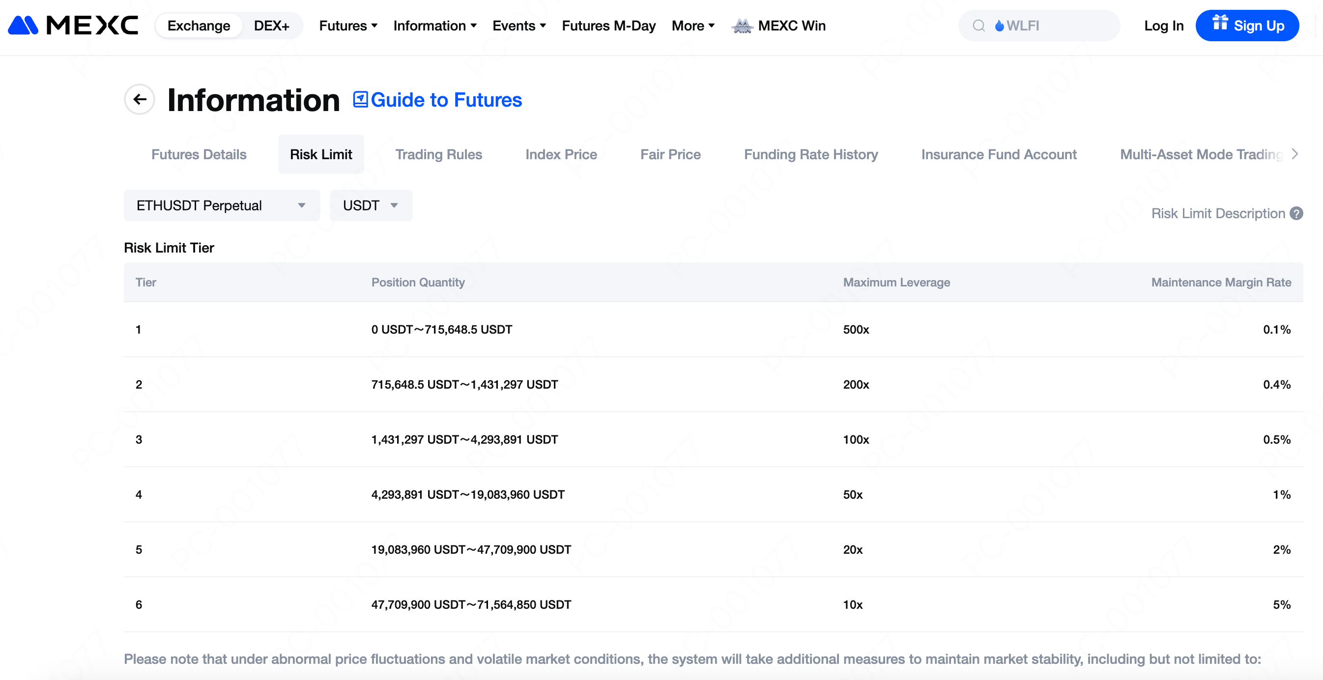 2. 如何在 MEXC 查看不同合約的風險限制詳情
